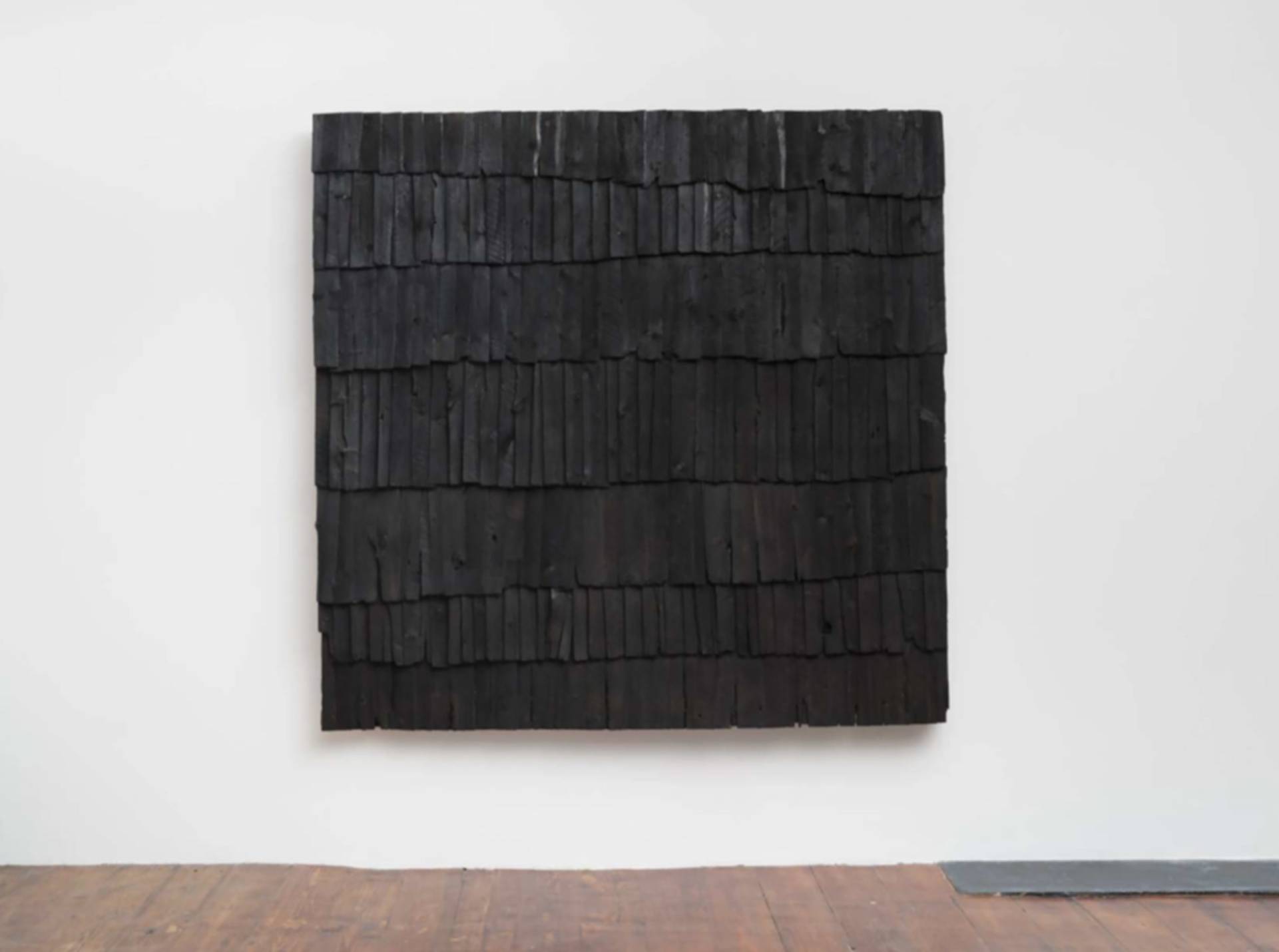 Augustas Serapinas, Roof from Rudninkai, Segment 2, 2022, bois récupéré brûlé, clous